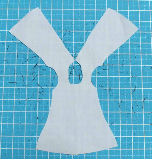 で、この型紙ですが下側が体の前の方で上の方が背中の方になりまして、いわゆる後ろ開きです。