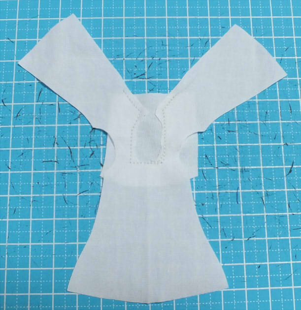 背中の上あたりから首回り一周を縫えるくらいの布を当ててますがお好みで。