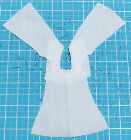 袖追加と首の回りの形状変えたのと脇から裾にかけて広げています。