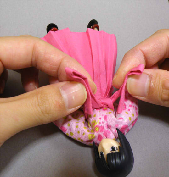 やってることは蝶々結びなんですが小さいものを結ぶにはこういう方法の方がやりやすいかなーと。