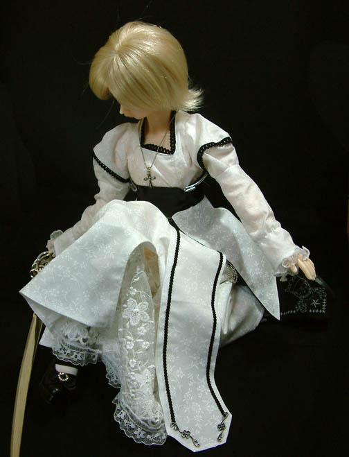 スカートは真ん中にスリットがあって動作に支障がないようにしています。