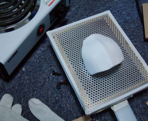 で、それをバキュームフォームのメッシュの上に型を乗せといてプレスするわけです。