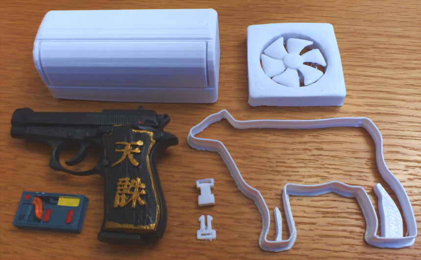 エアコン室内機、換気扇、性能アップする部品、プラバックル、ミニチュア銃のグリップ、牛のクッキー型等々。