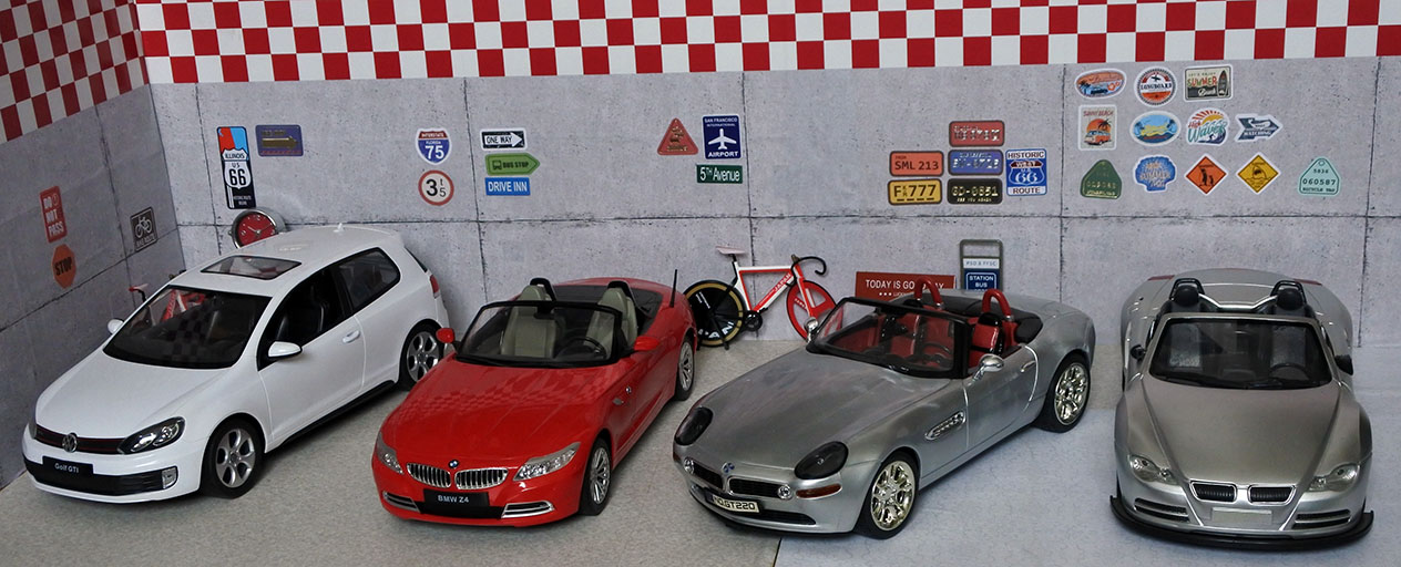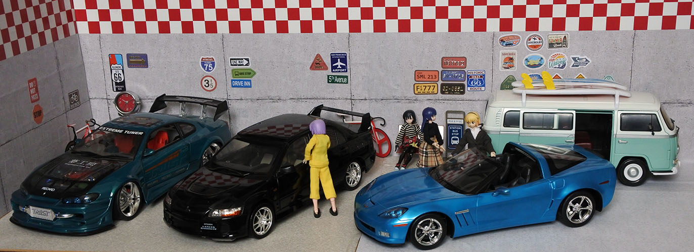 ガレージというか車屋さんなのか1/12サイズの車を飾れるスペースを作りました。