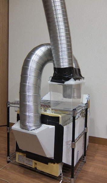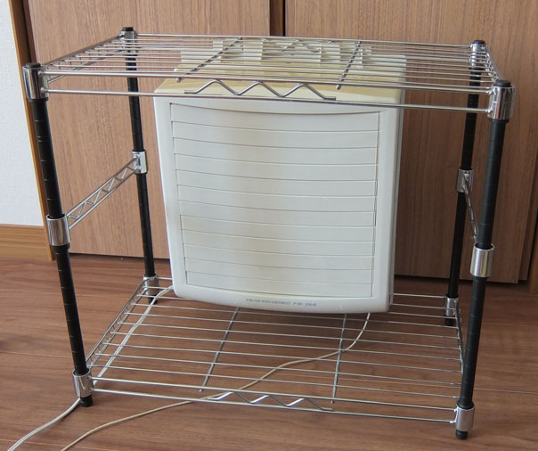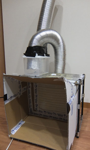 背面から排気ダクト付けて100均小物入れ経由で外に出すようにしています。